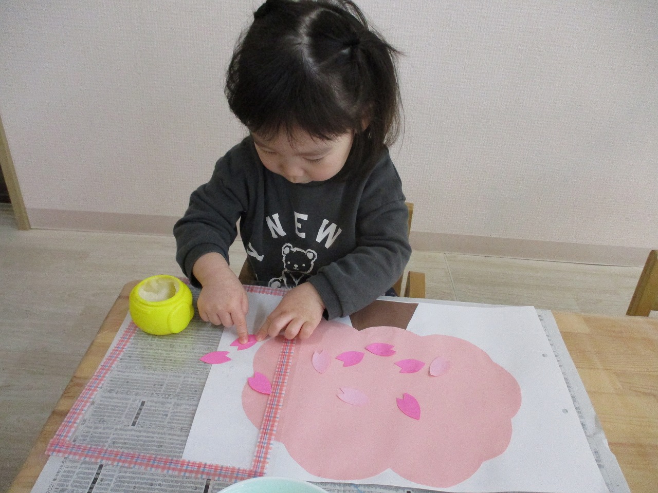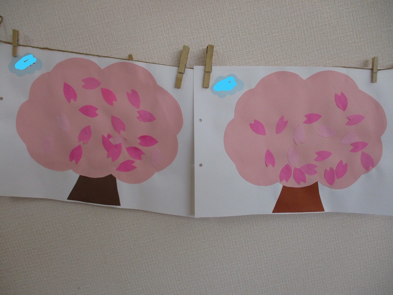 🌸りす組 3月の制作🌸 今月の制作では、『桜の木』を作りました。 子ども達には、沢山の花びらを糊で貼ってもらい 桜の木を満開にしてもらいました🌸 綺麗な桜の木が保育室に並び みんなで眺めて春がやって来るのを楽しみにしています✨ この1年間制作を通して色んな事が出来るようになった、子ども達。 来年も楽しく制作活動ができたらいいなと思います✨
